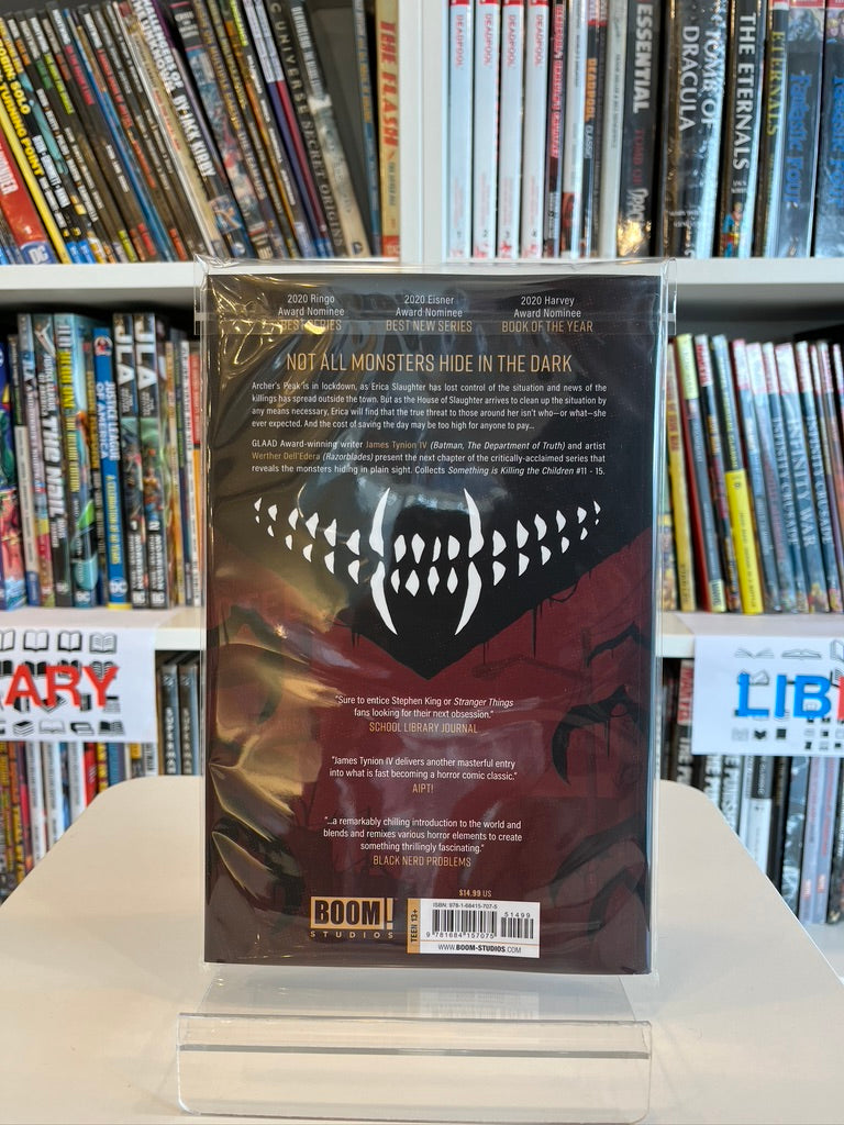 GLAAD Award-winning writer James Tynion IV (Batman, The Woods) and artist Werther Dell’Edera (Briggs Land) present the next chapter of the Eisner Award-nominated and critically-acclaimed series that reveals the monsters hiding in plain sight. Collects Something is Killing The Children #11-15.